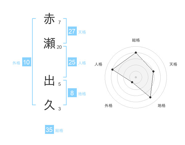 赤瀬 出久さんの総格は35画の4点!
