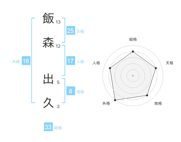 飯森 出久さんの外格は16画の5点!