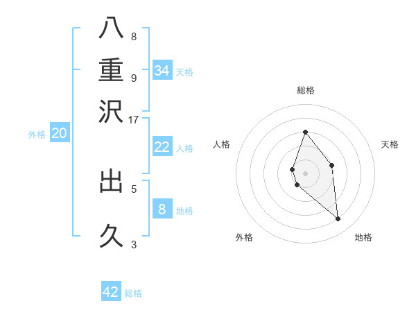 八重沢 出久さんを姓名の画数から五運を鑑定