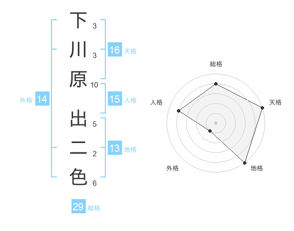 下川原 出二色さんを姓名の画数から五運を鑑定
