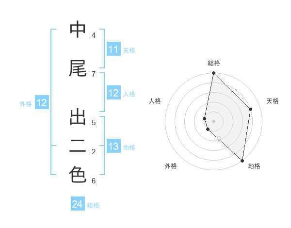 中尾 出二色さんを姓名の画数から五運を鑑定