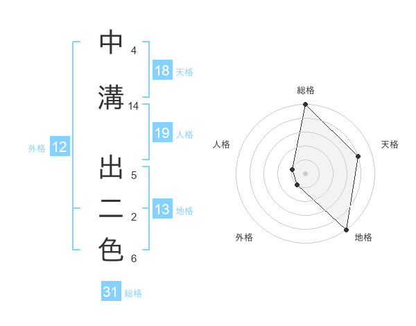 中溝 出二色さんの総格は31画の5点!