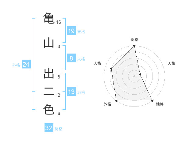 亀山 出二色さんを姓名の画数から五運を鑑定