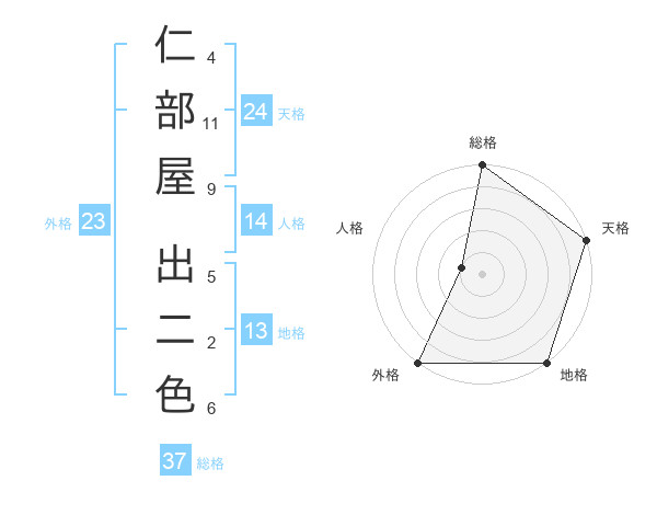 仁部屋 出二色さんを姓名の画数から五運を鑑定