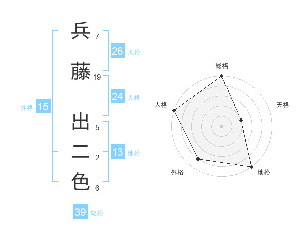 兵藤 出二色さんの総格は39画の5点!