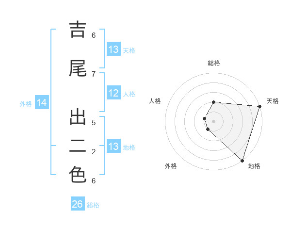 吉尾 出二色さんを姓名の画数から五運を鑑定
