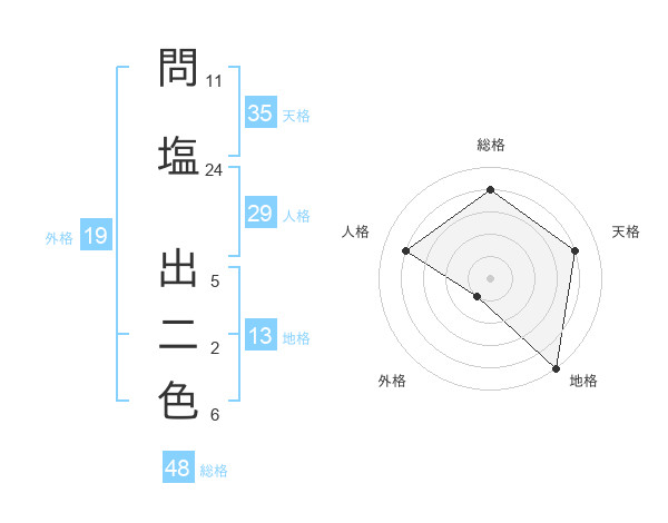 問塩 出二色さんを姓名の画数から五運を鑑定