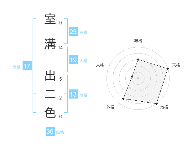 室溝 出二色さんを姓名の画数から五運を鑑定