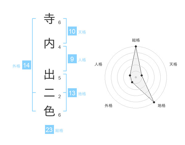 寺内 出二色さんの総格は23画の5点!