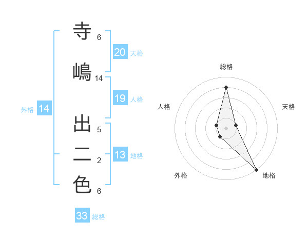寺嶋 出二色さんの総格は33画の4点!