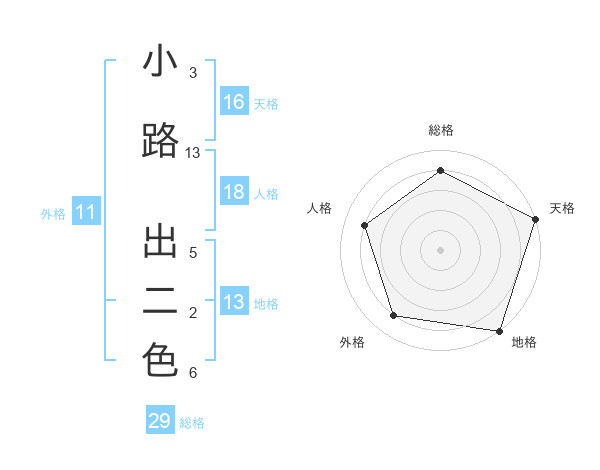 小路 出二色さんの総格は29画の4点!