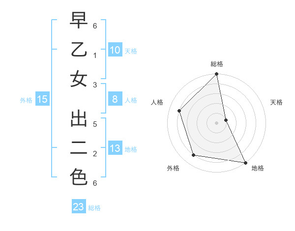 早乙女 出二色さんを姓名の画数から五運を鑑定