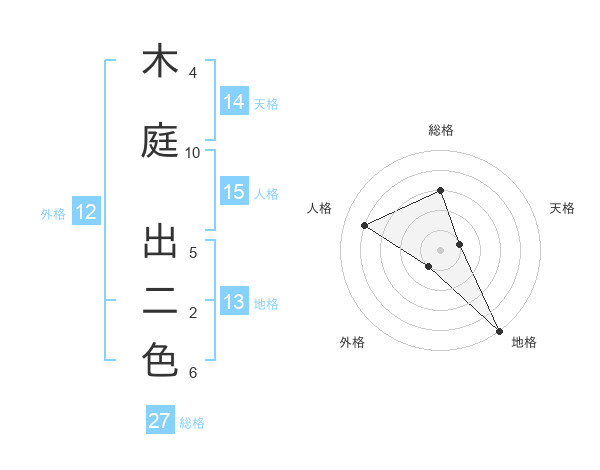木庭 出二色さんの総格は27画の3点!