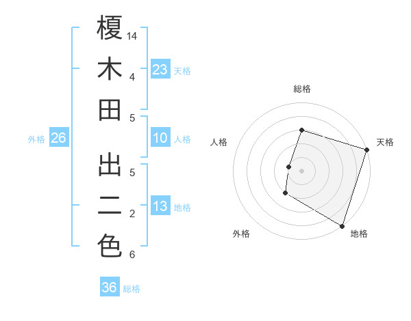 榎木田 出二色さんを姓名の画数から五運を鑑定