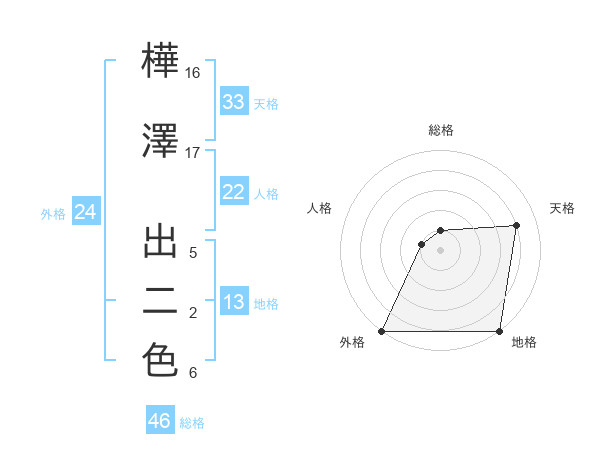 樺澤 出二色さんの外格は24画の5点!