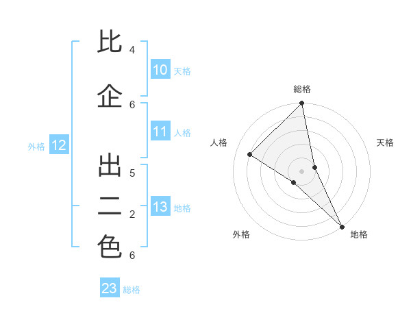 比企 出二色さんの総格は23画の5点!