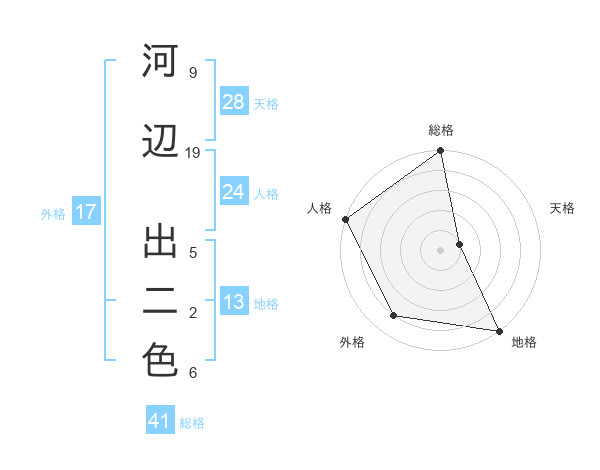 河辺 出二色さんを姓名の画数から五運を鑑定