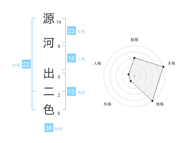 源河 出二色さんの天格は23画の5点!