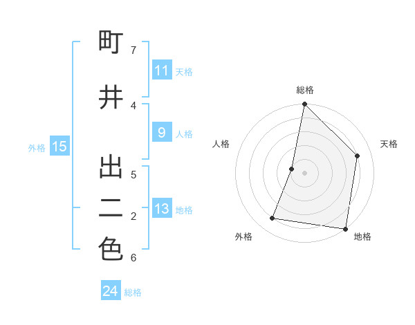 町井 出二色さんの総格は24画の5点!