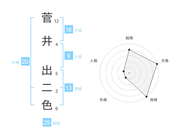 菅井 出二色さんを姓名の画数から五運を鑑定