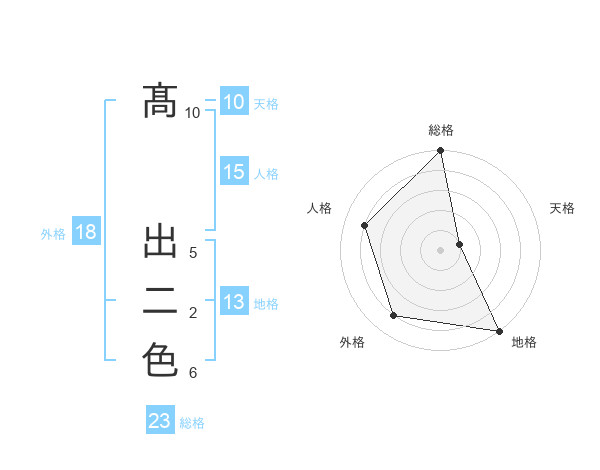 髙 出二色さんの総格は23画の5点!