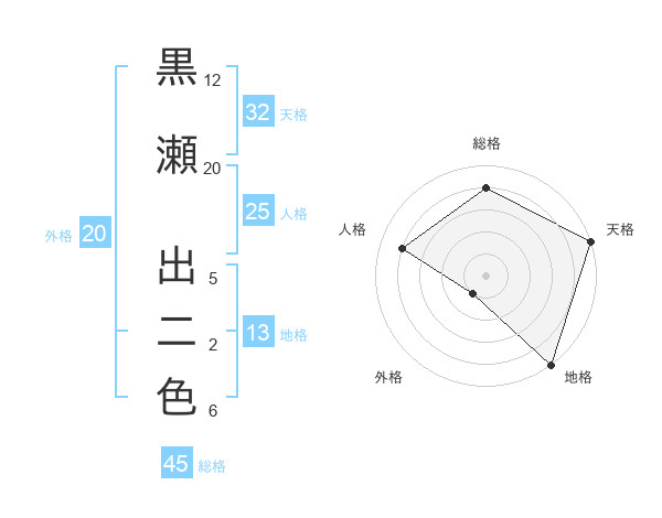 黒瀬 出二色さんを姓名の画数から五運を鑑定