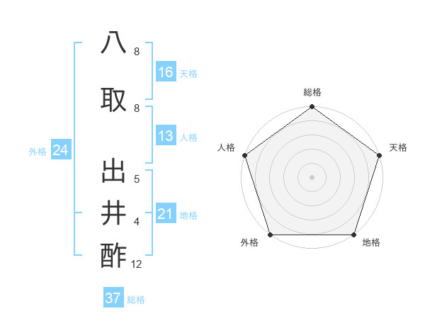 八取 出井酢さんの総格は37画の5点!