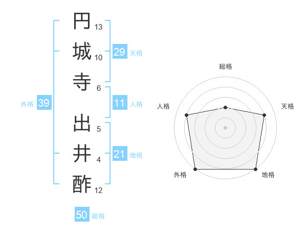 円城寺 出井酢さんの外格は39画の5点!
