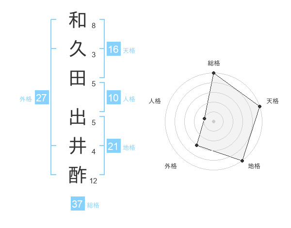 和久田 出井酢さんを姓名の画数から五運を鑑定
