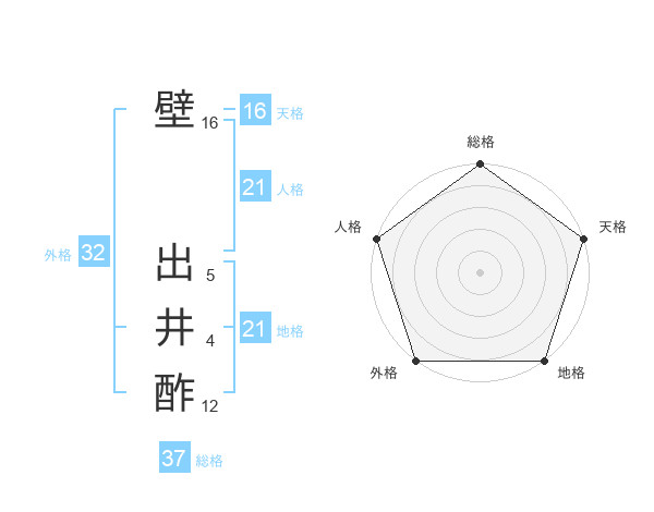 壁 出井酢さんの総格は37画の5点!