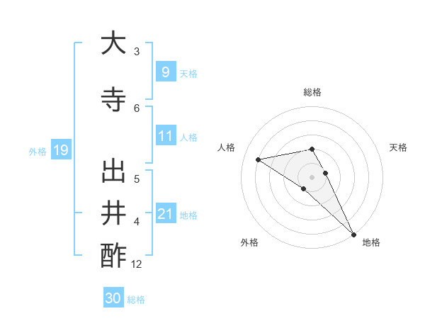 大寺 出井酢さんの総格は30画の2点!