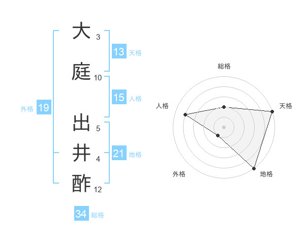 大庭 出井酢さんの総格は34画の2点!