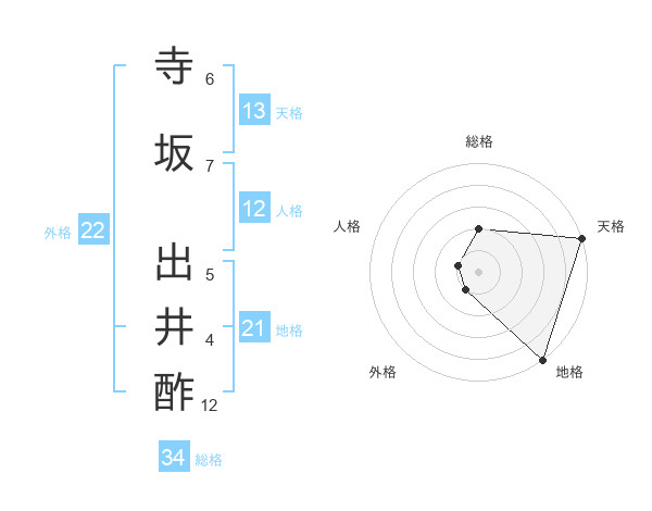 寺坂 出井酢さんを姓名の画数から五運を鑑定