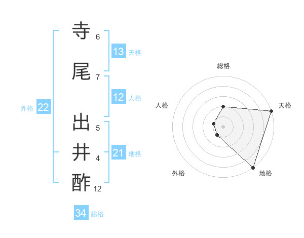 寺尾 出井酢さんの総格は34画の2点!