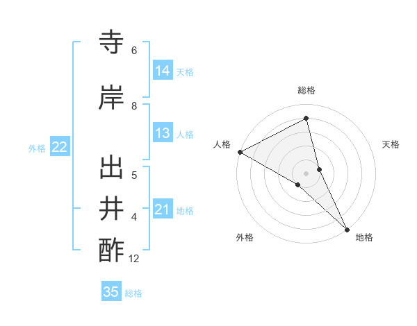 寺岸 出井酢さんを姓名の画数から五運を鑑定