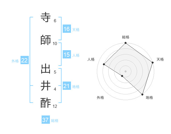 寺師 出井酢さんの総格は37画の5点!