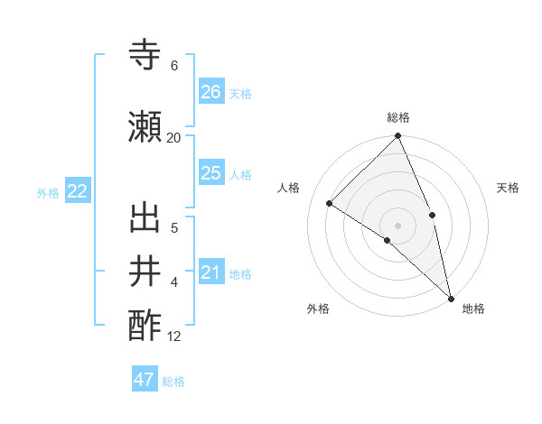寺瀬 出井酢さんの総格は47画の5点!