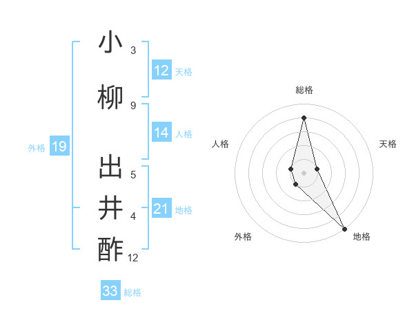 小柳 出井酢さんを姓名の画数から五運を鑑定