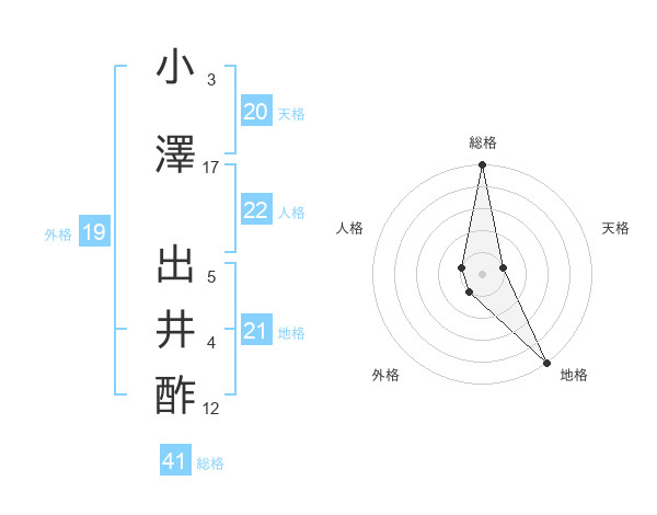 小澤 出井酢さんの総格は41画の5点!