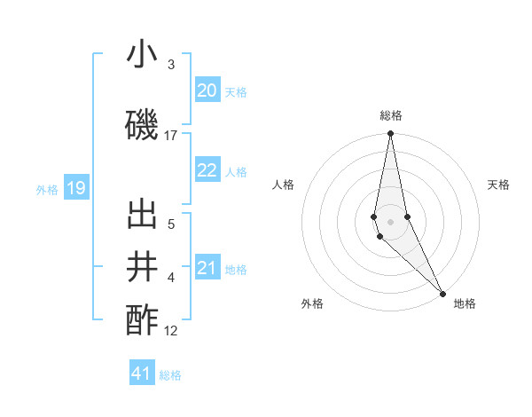 小磯 出井酢さんを姓名の画数から五運を鑑定