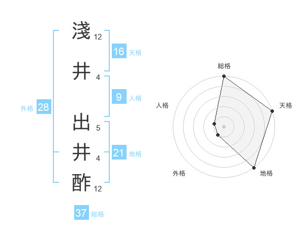 淺井 出井酢さんを姓名の画数から五運を鑑定