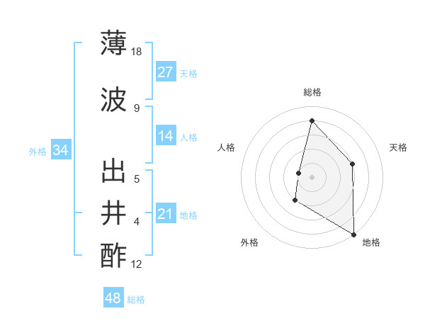 薄波 出井酢さんを姓名の画数から五運を鑑定