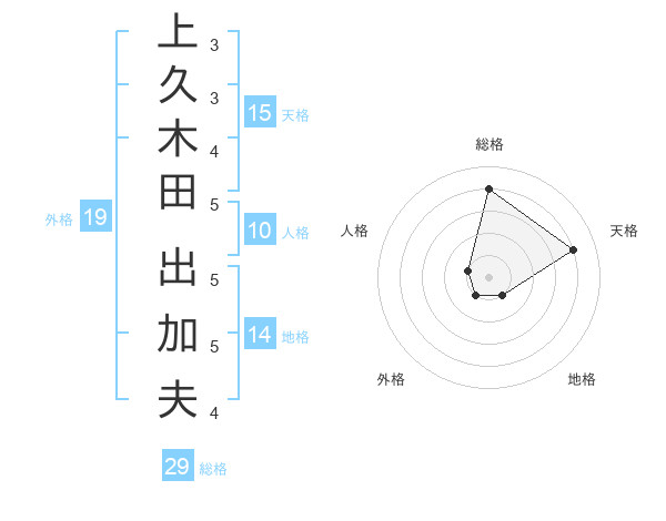 上久木田 出加夫さんの総格は29画の4点