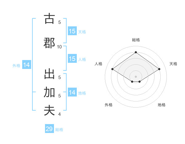 古郡 出加夫さんの総格は29画の4点!