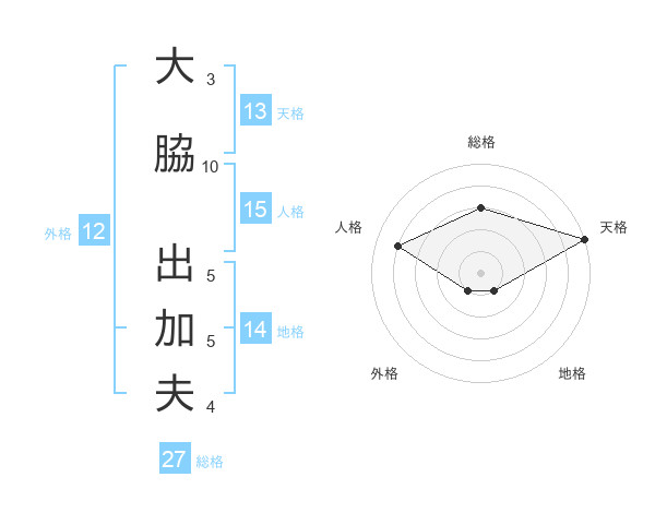 大脇 出加夫さんを姓名の画数から五運を鑑定