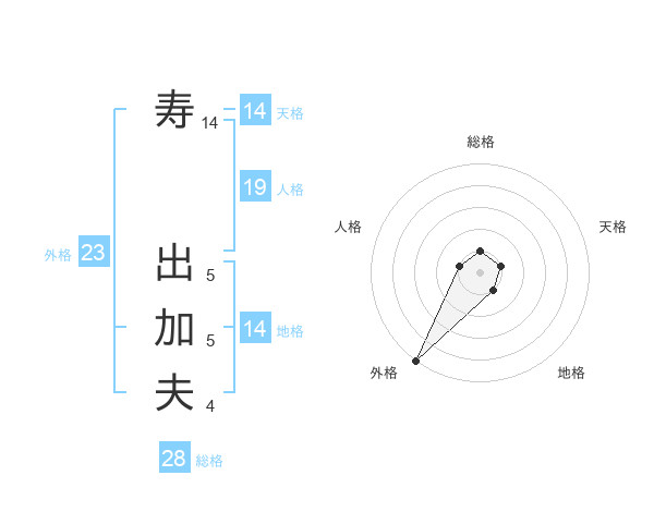 寿 出加夫さんの外格は23画の5点!
