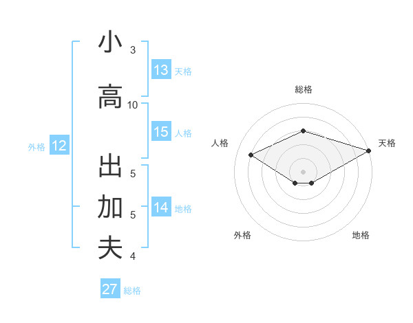 小高 出加夫さんの総格は27画の3点!