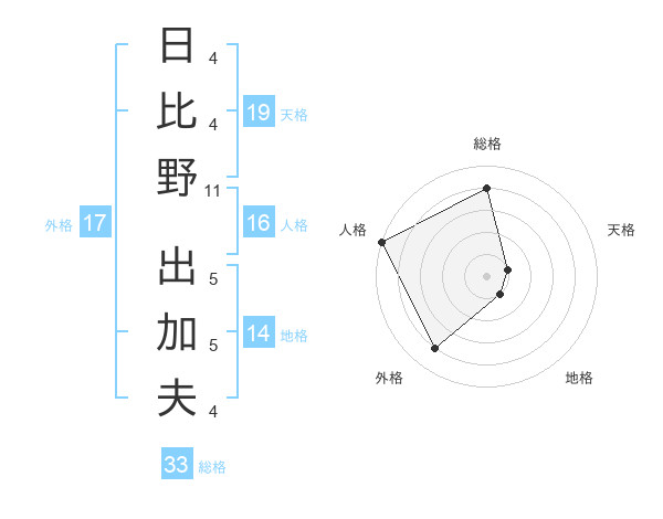 日比野 出加夫さんを姓名の画数から五運を鑑定