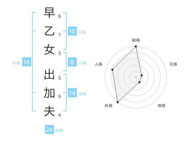 早乙女 出加夫さんの外格は16画の5点!