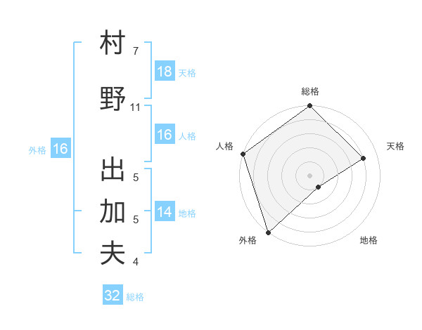 村野 出加夫さんの外格は16画の5点!